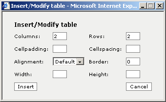 El botón insertar tabla abre la siguiente ventana. Esta acci&ocaute;n te permite crear tablas.